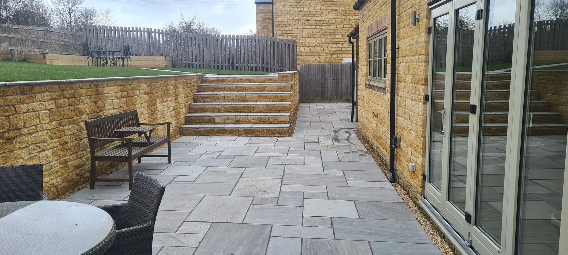 “Phil did the hard landscaping at our new property – a large patio at the rear of the house, a smaller patio at the bottom of the plot, steps and interconnecting paths.